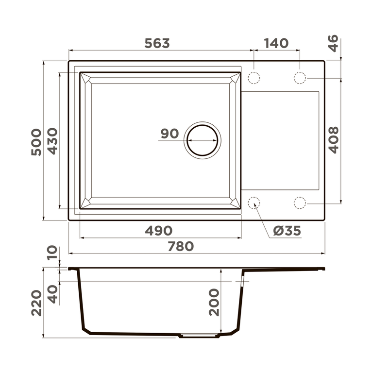 Материал выдерживает высокие температуры до 280°С (но не стоит ставить на поверхность мойки горячие сковородки и кастрюли, т.к их температура может достигать 500°С).