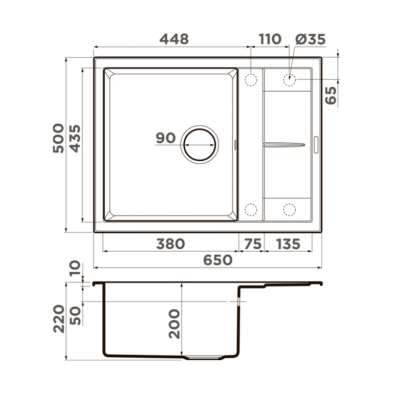 Материал выдерживает высокие температуры до 280°С (но не стоит ставить на поверхность мойки горячие сковородки и кастрюли, т.к их температура может достигать 500°С).
