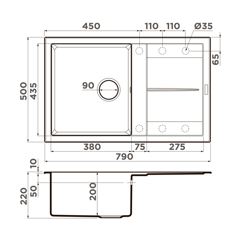 Материал выдерживает высокие температуры до 280°С (но не стоит ставить на поверхность мойки горячие сковородки и кастрюли, т.к их температура может достигать 500°С).