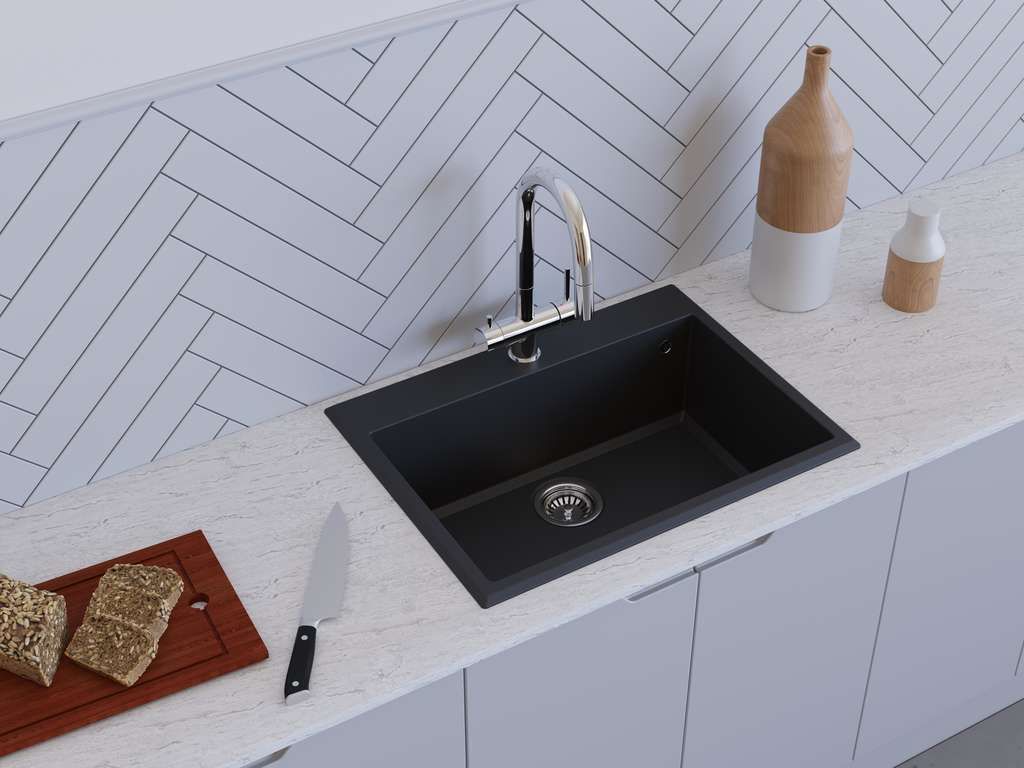 Мойка черного цвета создана из материала «Tetogranit Metal».