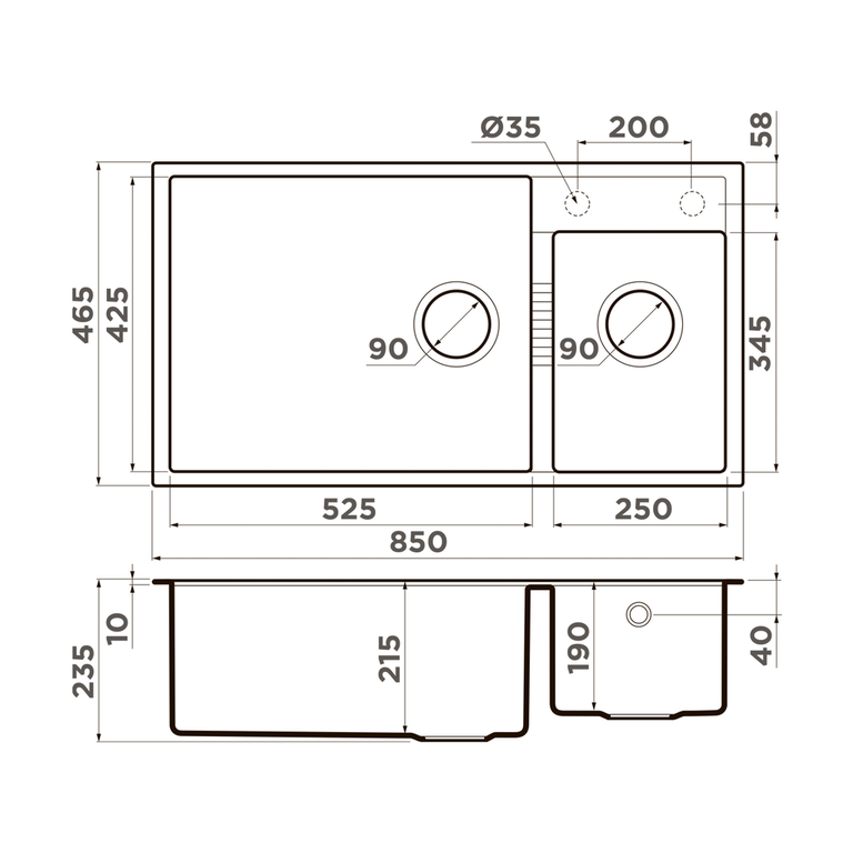 Материал выдерживает высокие температуры до 280°С (но не стоит ставить на поверхность мойки горячие сковородки и кастрюли, т.к их температура может достигать 500°С).