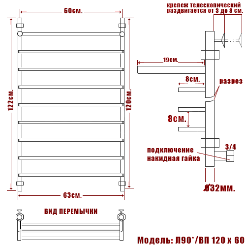 Полотенцесушитель водяной Ника QVADRO Л 90 ВП 120/60 - цена 21993 руб. Оформить заказ и купить полотенцесушитель Ника QVADRO Л 90 ВП 120/60 в Москве в нашем интернет магазине можно по тел 8 (919) 991-95-00 или добавив товар в корзину.