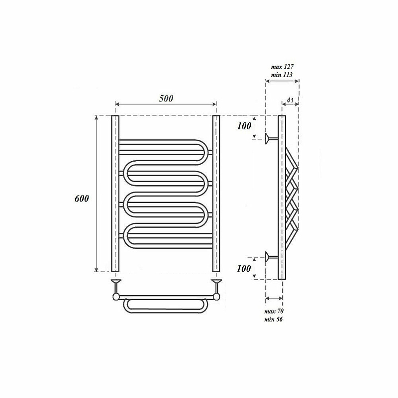 Полотенцесушитель электрический Point PN07156E П6 50x60 левый/правый, хром