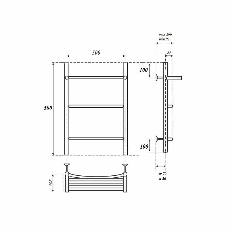 Полотенцесушитель электрический Point PN04155E П3 50x50 левый/правый, хром