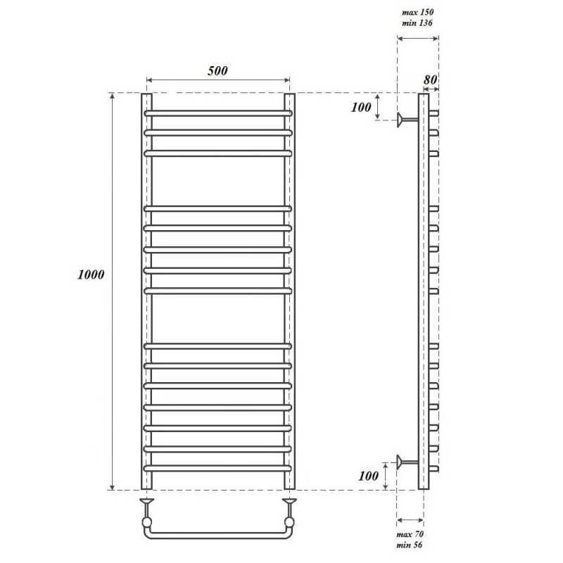 Полотенцесушитель электрический Point PN09150E П10 50x100 левый/правый, хром
