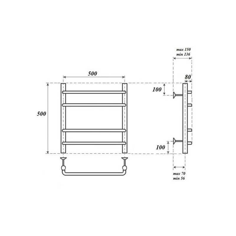 Полотенцесушитель электрический Point PN04155E П3 50x50 левый/правый, хром