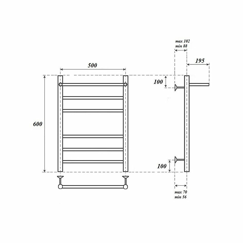 Полотенцесушитель электрический Point PN07156E П6 50x60 левый/правый, хром
