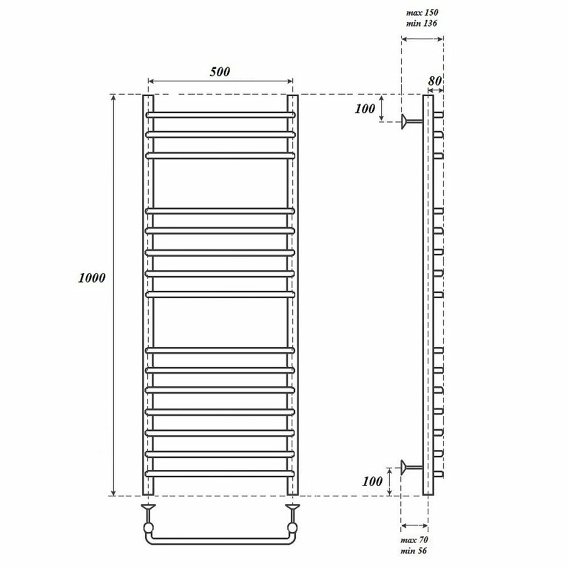 Полотенцесушитель водяной Point Серия 09 П15 50x100, хром - PN09150S