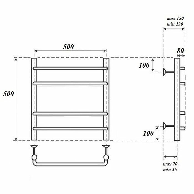 Полотенцесушитель водяной Point PN04155 П3 50x50, хром