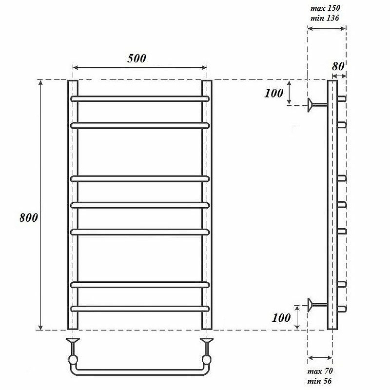 Полотенцесушитель водяной Point PN07558 П7 50x80 с боковым подключением 50, хром
