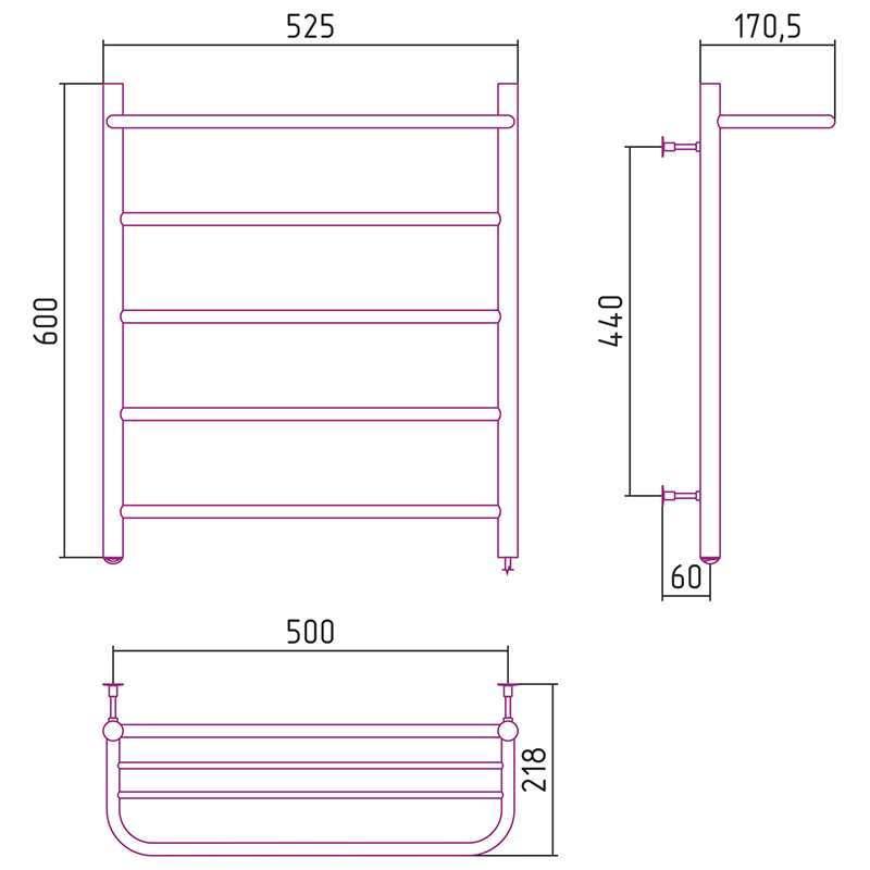Полотенцесушитель электрический Стилье Формат 30 П, 600х500 (Полка + 4) П16 (74 Вт) - 00530-6050