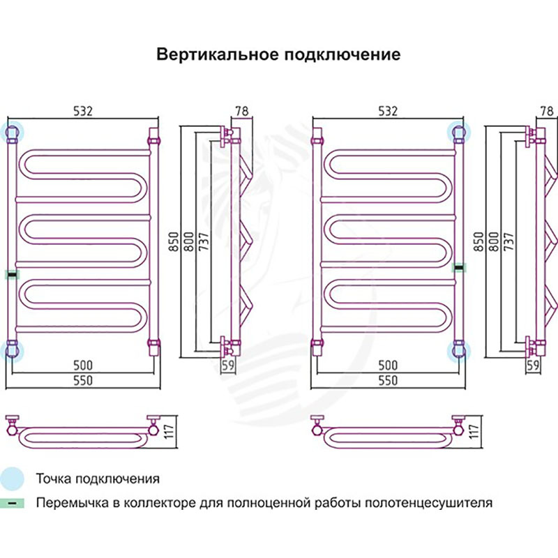 Полотенцесушитель водяной Стилье Универсал-53 00653-8050