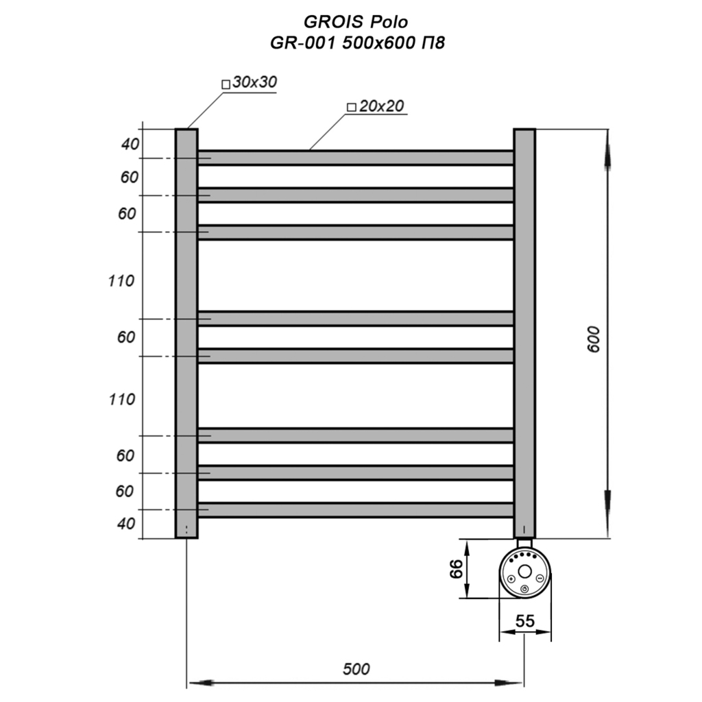 Полотенцесушитель электрический Grois Polo GR-001 500х600 П8 (3+2+3) RAL9005 черный матовый - цена 11430 руб. Оформить заказ и купить полотенцесушитель Grois Polo GR-001 500х600 П8 (3+2+3) RAL9005 черный матовый в Москве в нашем интернет магазине можно по тел 8 (919) 991-95-00 или добавив товар в корзину.