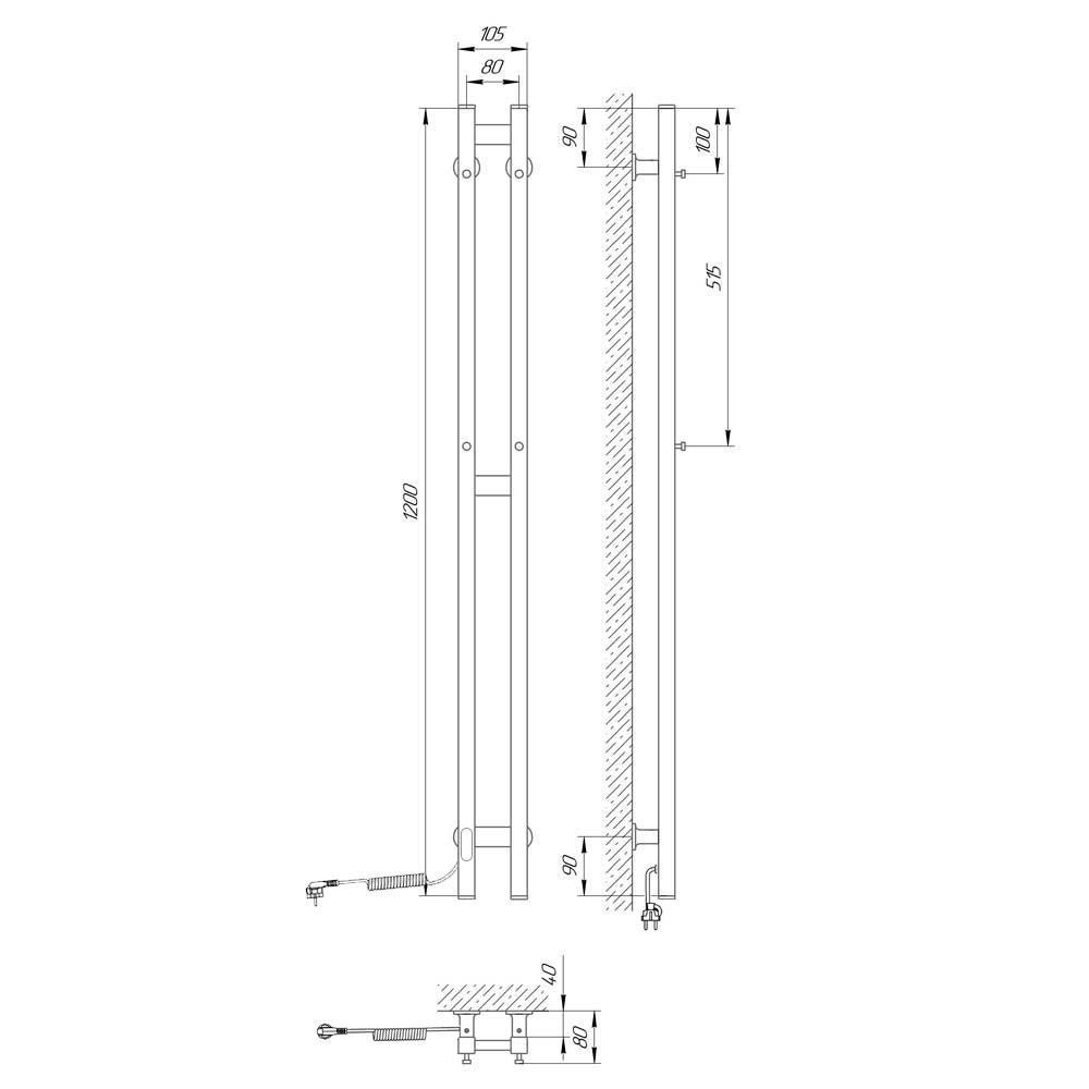 Полотенцесушитель электрический LARIS Прайм Дуэт ЧКЧ 80/1200 правый тэн черный - цена 9990 руб. Оформить заказ и купить полотенцесушитель LARIS Прайм Дуэт ЧКЧ 80/1200 правый тэн черный в Москве в нашем интернет магазине можно по тел 8 (919) 991-95-00 или добавив товар в корзину.