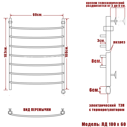 Полотенцесушитель электрический Ника ARC ЛД 100/60 правый тэн - цена 25251 руб. Оформить заказ и купить полотенцесушитель Ника ARC ЛД 100/60 правый тэн в Москве в нашем интернет магазине можно по тел 8 (919) 991-95-00 или добавив товар в корзину.