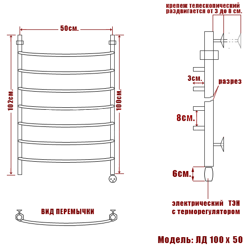 Полотенцесушитель электрический Ника ARC ЛД 100/50 правый тэн - цена 24605 руб. Оформить заказ и купить полотенцесушитель Ника ARC ЛД 100/50 правый тэн в Москве в нашем интернет магазине можно по тел 8 (919) 991-95-00 или добавив товар в корзину.