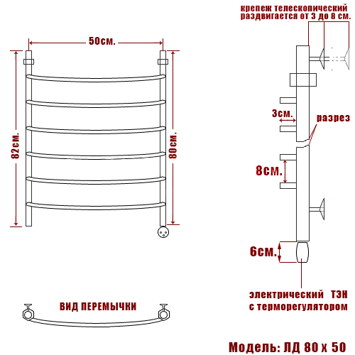 Полотенцесушитель электрический Ника ARC ЛД 80/50 правый тэн - цена 22591 руб. Оформить заказ и купить полотенцесушитель Ника ARC ЛД 80/50 правый тэн в Москве в нашем интернет магазине можно по тел 8 (919) 991-95-00 или добавив товар в корзину.