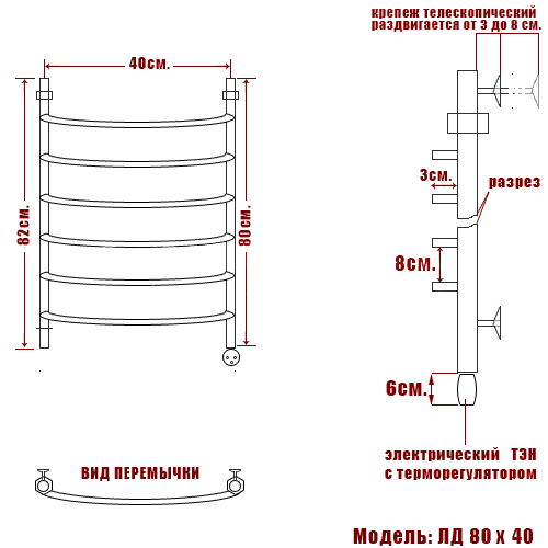 Полотенцесушитель электрический Ника ARC ЛД 80/40 правый тэн - цена 21926 руб. Оформить заказ и купить полотенцесушитель Ника ARC ЛД 80/40 правый тэн в Москве в нашем интернет магазине можно по тел 8 (919) 991-95-00 или добавив товар в корзину.