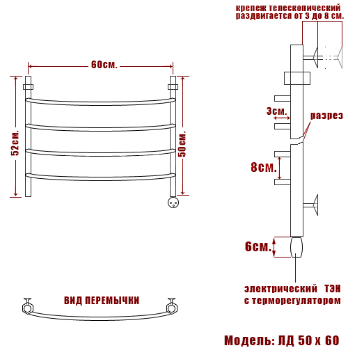 Полотенцесушитель электрический Ника ARC ЛД 50/60 правый тэн - цена 20235 руб. Оформить заказ и купить полотенцесушитель Ника ARC ЛД 50/60 правый тэн в Москве в нашем интернет магазине можно по тел 8 (919) 991-95-00 или добавив товар в корзину.