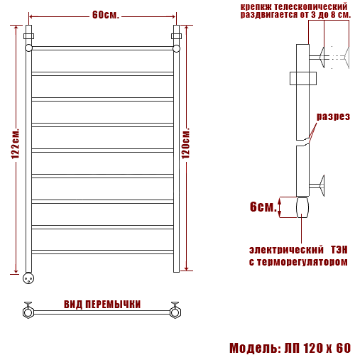Полотенцесушитель электрический Ника Classic ЛП 120/60/66 хром без полочки левый - цена 26940 руб. Оформить заказ и купить полотенцесушитель Ника Classic ЛП 120/60/66 хром без полочки левый в Москве в нашем интернет магазине можно по тел 8 (919) 991-95-00 или добавив товар в корзину.