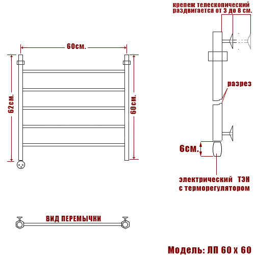 Полотенцесушитель электрический Ника Classic ЛП 60/60/66 хром без полочки левый - цена 19410 руб. Оформить заказ и купить полотенцесушитель Ника Classic ЛП 60/60/66 хром без полочки левый в Москве в нашем интернет магазине можно по тел 8 (919) 991-95-00 или добавив товар в корзину.