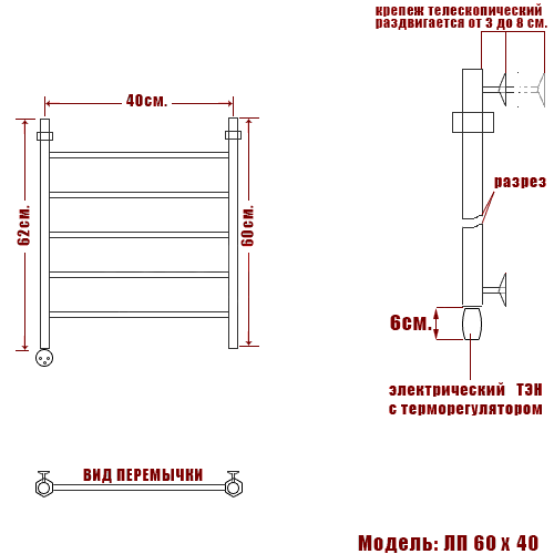 Полотенцесушитель электрический Ника Classic ЛП 60/40/46 хром без полочки левый - цена 10636 руб. Оформить заказ и купить полотенцесушитель Ника Classic ЛП 60/40/46 хром без полочки левый в Москве в нашем интернет магазине можно по тел 8 (919) 991-95-00 или добавив товар в корзину.