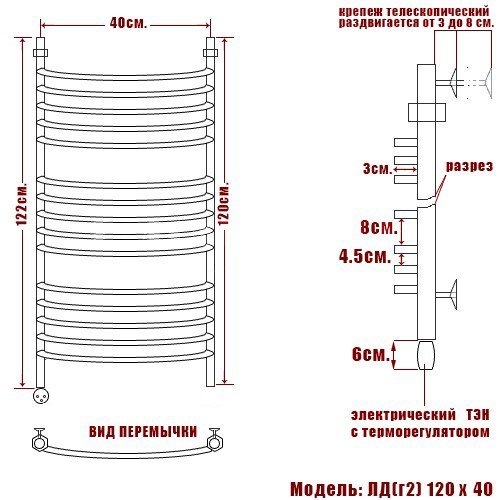 Полотенцесушитель электрический Ника ARC ЛД (Г2) 120/40 левый тэн - цена 27332 руб. Оформить заказ и купить полотенцесушитель Ника ARC ЛД (Г2) 120/40 левый тэн в Москве в нашем интернет магазине можно по тел 8 (919) 991-95-00 или добавив товар в корзину.