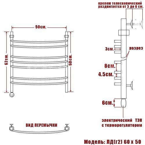 Полотенцесушитель электрический Ника ARC ЛД (Г2) 60/50 левый тэн - цена 21974 руб. Оформить заказ и купить полотенцесушитель Ника ARC ЛД (Г2) 60/50 левый тэн в Москве в нашем интернет магазине можно по тел 8 (919) 991-95-00 или добавив товар в корзину.