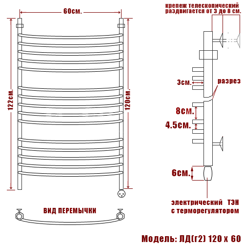 Полотенцесушитель электрический Ника ARC ЛД (Г2) 120/60 правый тэн - цена 28662 руб. Оформить заказ и купить полотенцесушитель Ника ARC ЛД (Г2) 120/60 правый тэн в Москве в нашем интернет магазине можно по тел 8 (919) 991-95-00 или добавив товар в корзину.