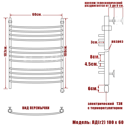 Полотенцесушитель электрический Ника ARC ЛД (Г2) 100/60 правый тэн - цена 26657 руб. Оформить заказ и купить полотенцесушитель Ника ARC ЛД (Г2) 100/60 правый тэн в Москве в нашем интернет магазине можно по тел 8 (919) 991-95-00 или добавив товар в корзину.