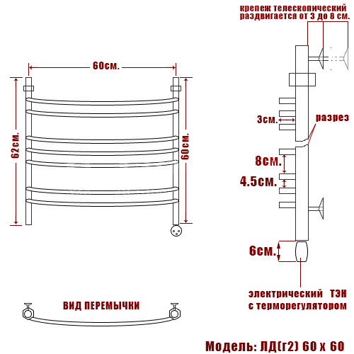 Полотенцесушитель электрический Ника ARC ЛД (Г2) 60/60 правый тэн - цена 22639 руб. Оформить заказ и купить полотенцесушитель Ника ARC ЛД (Г2) 60/60 правый тэн в Москве в нашем интернет магазине можно по тел 8 (919) 991-95-00 или добавив товар в корзину.