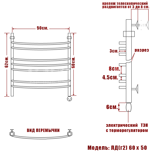 Полотенцесушитель электрический Ника ARC ЛД (Г2) 60/50 правый тэн - цена 21974 руб. Оформить заказ и купить полотенцесушитель Ника ARC ЛД (Г2) 60/50 правый тэн в Москве в нашем интернет магазине можно по тел 8 (919) 991-95-00 или добавив товар в корзину.