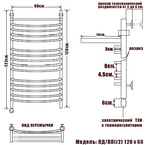 Полотенцесушитель электрический Ника ARC ЛД (Г2) ВП 120/60 левый тэн - цена 25785 руб. Оформить заказ и купить полотенцесушитель Ника ARC ЛД (Г2) ВП 120/60 левый тэн в Москве в нашем интернет магазине можно по тел 8 (919) 991-95-00 или добавив товар в корзину.