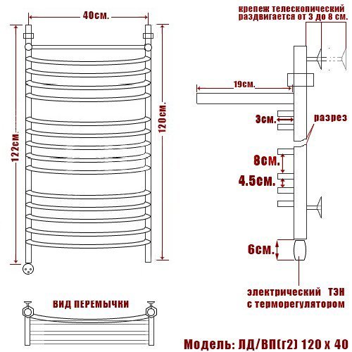Полотенцесушитель электрический Ника ARC ЛД (Г2) ВП 120/40 левый тэн - цена 29336 руб. Оформить заказ и купить полотенцесушитель Ника ARC ЛД (Г2) ВП 120/40 левый тэн в Москве в нашем интернет магазине можно по тел 8 (919) 991-95-00 или добавив товар в корзину.