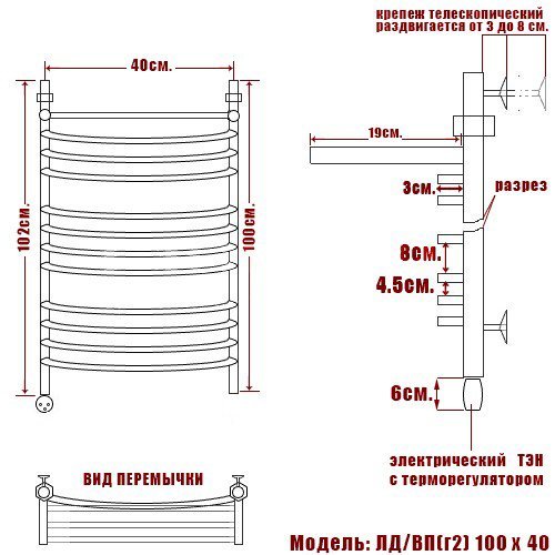 Полотенцесушитель электрический Ника ARC ЛД (Г2) ВП 100/40 левый тэн - цена 27332 руб. Оформить заказ и купить полотенцесушитель Ника ARC ЛД (Г2) ВП 100/40 левый тэн в Москве в нашем интернет магазине можно по тел 8 (919) 991-95-00 или добавив товар в корзину.