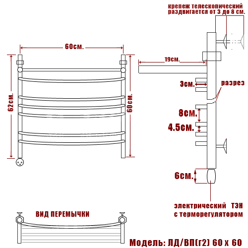 Полотенцесушитель электрический Ника ARC ЛД (Г2) ВП 60/60 левый тэн - цена 20718 руб. Оформить заказ и купить полотенцесушитель Ника ARC ЛД (Г2) ВП 60/60 левый тэн в Москве в нашем интернет магазине можно по тел 8 (919) 991-95-00 или добавив товар в корзину.