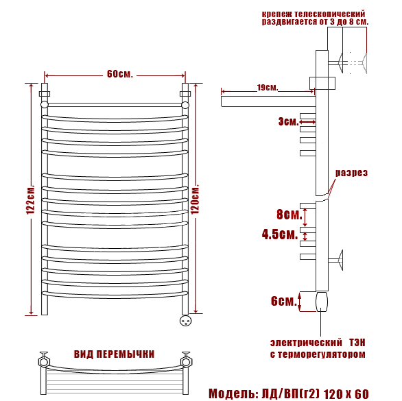 Полотенцесушитель электрический Ника ARC ЛД (Г2) ВП 120/60 правый тэн - цена 30676 руб. Оформить заказ и купить полотенцесушитель Ника ARC ЛД (Г2) ВП 120/60 правый тэн в Москве в нашем интернет магазине можно по тел 8 (919) 991-95-00 или добавив товар в корзину.