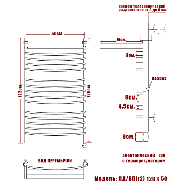 Полотенцесушитель электрический Ника ARC ЛД (Г2) ВП 120/50 правый тэн - цена 28024 руб. Оформить заказ и купить полотенцесушитель Ника ARC ЛД (Г2) ВП 120/50 правый тэн в Москве в нашем интернет магазине можно по тел 8 (919) 991-95-00 или добавив товар в корзину.