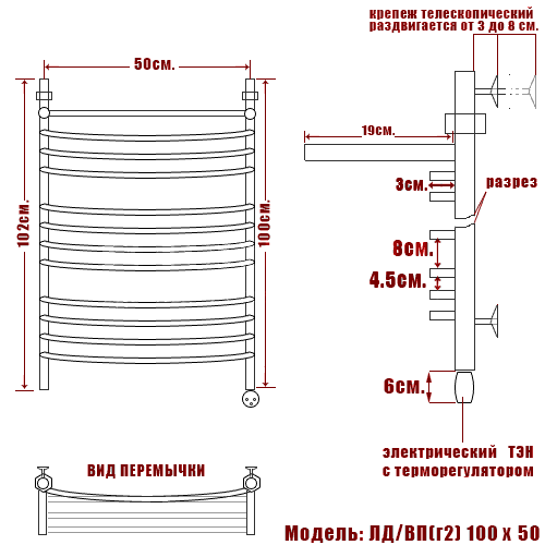Полотенцесушитель электрический Ника ARC ЛД (Г2) ВП 100/50 правый тэн - цена 27997 руб. Оформить заказ и купить полотенцесушитель Ника ARC ЛД (Г2) ВП 100/50 правый тэн в Москве в нашем интернет магазине можно по тел 8 (919) 991-95-00 или добавив товар в корзину.