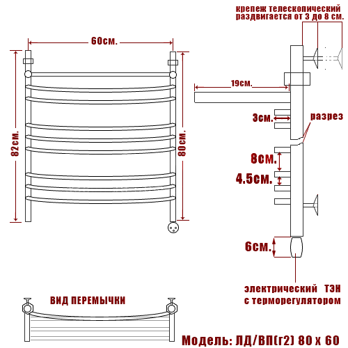 Полотенцесушитель электрический Ника ARC ЛД (Г2) ВП 80/60 правый тэн - цена 26657 руб. Оформить заказ и купить полотенцесушитель Ника ARC ЛД (Г2) ВП 80/60 правый тэн в Москве в нашем интернет магазине можно по тел 8 (919) 991-95-00 или добавив товар в корзину.