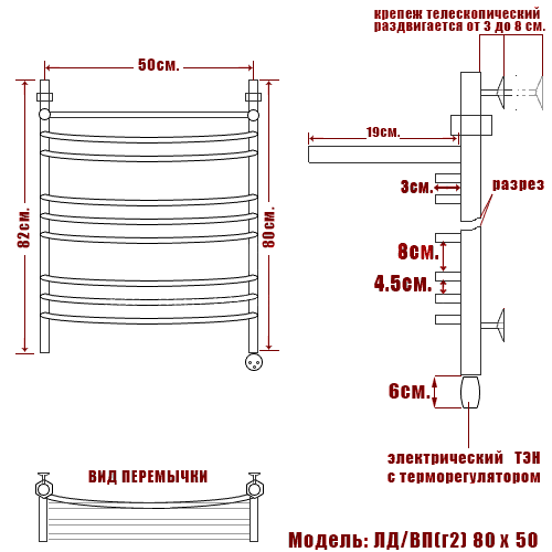 Полотенцесушитель электрический Ника ARC ЛД (Г2) ВП 80/50 правый тэн - цена 25992 руб. Оформить заказ и купить полотенцесушитель Ника ARC ЛД (Г2) ВП 80/50 правый тэн в Москве в нашем интернет магазине можно по тел 8 (919) 991-95-00 или добавив товар в корзину.