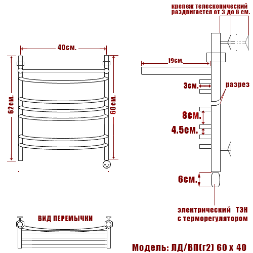 Полотенцесушитель электрический Ника ARC ЛД-(Г2) ВП-60/40/47 с полочкой хром правый - цена 17920 руб. Оформить заказ и купить полотенцесушитель Ника ARC ЛД-(Г2) ВП-60/40/47 с полочкой хром правый в Москве в нашем интернет магазине можно по тел 8 (919) 991-95-00 или добавив товар в корзину.