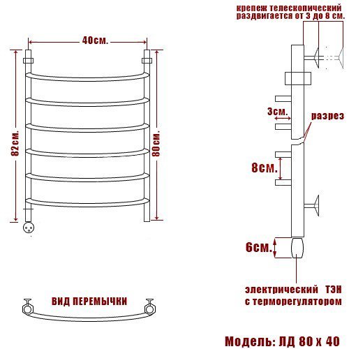 Полотенцесушитель электрический Ника ARC ЛД 80/40 левый тэн - цена 21926 руб. Оформить заказ и купить полотенцесушитель Ника ARC ЛД 80/40 левый тэн в Москве в нашем интернет магазине можно по тел 8 (919) 991-95-00 или добавив товар в корзину.