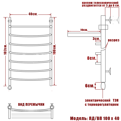 Полотенцесушитель электрический Ника ARC ЛД ВП 100/40 левый тэн - цена 25945 руб. Оформить заказ и купить полотенцесушитель Ника ARC ЛД ВП 100/40 левый тэн в Москве в нашем интернет магазине можно по тел 8 (919) 991-95-00 или добавив товар в корзину.