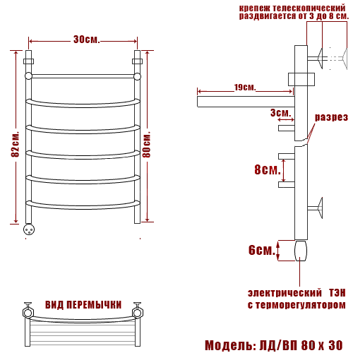 Полотенцесушитель электрический Ника ARC ЛД ВП 80/30 левый тэн - цена 23940 руб. Оформить заказ и купить полотенцесушитель Ника ARC ЛД ВП 80/30 левый тэн в Москве в нашем интернет магазине можно по тел 8 (919) 991-95-00 или добавив товар в корзину.