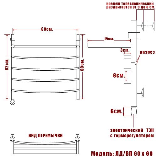 Полотенцесушитель электрический Ника ARC ЛД ВП 60/60 левый тэн - цена 23275 руб. Оформить заказ и купить полотенцесушитель Ника ARC ЛД ВП 60/60 левый тэн в Москве в нашем интернет магазине можно по тел 8 (919) 991-95-00 или добавив товар в корзину.