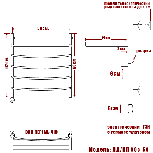 Полотенцесушитель электрический Ника ARC ЛД ВП 60/50 левый тэн - цена 22601 руб. Оформить заказ и купить полотенцесушитель Ника ARC ЛД ВП 60/50 левый тэн в Москве в нашем интернет магазине можно по тел 8 (919) 991-95-00 или добавив товар в корзину.