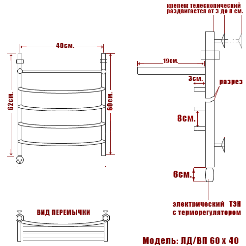 Полотенцесушитель электрический Ника ARC ЛД ВП 60/40 левый тэн - цена 21926 руб. Оформить заказ и купить полотенцесушитель Ника ARC ЛД ВП 60/40 левый тэн в Москве в нашем интернет магазине можно по тел 8 (919) 991-95-00 или добавив товар в корзину.