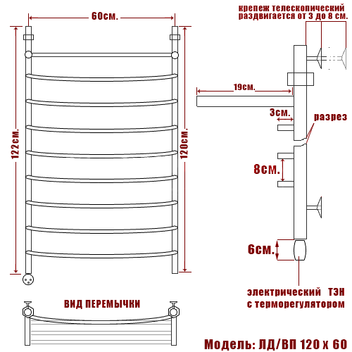 Полотенцесушитель электрический Ника ARC ЛД ВП 120/60 левый тэн - цена 29298 руб. Оформить заказ и купить полотенцесушитель Ника ARC ЛД ВП 120/60 левый тэн в Москве в нашем интернет магазине можно по тел 8 (919) 991-95-00 или добавив товар в корзину.