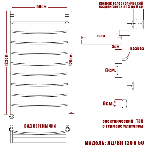 Полотенцесушитель электрический Ника ARC ЛД ВП 120/50 левый тэн - цена 28624 руб. Оформить заказ и купить полотенцесушитель Ника ARC ЛД ВП 120/50 левый тэн в Москве в нашем интернет магазине можно по тел 8 (919) 991-95-00 или добавив товар в корзину.